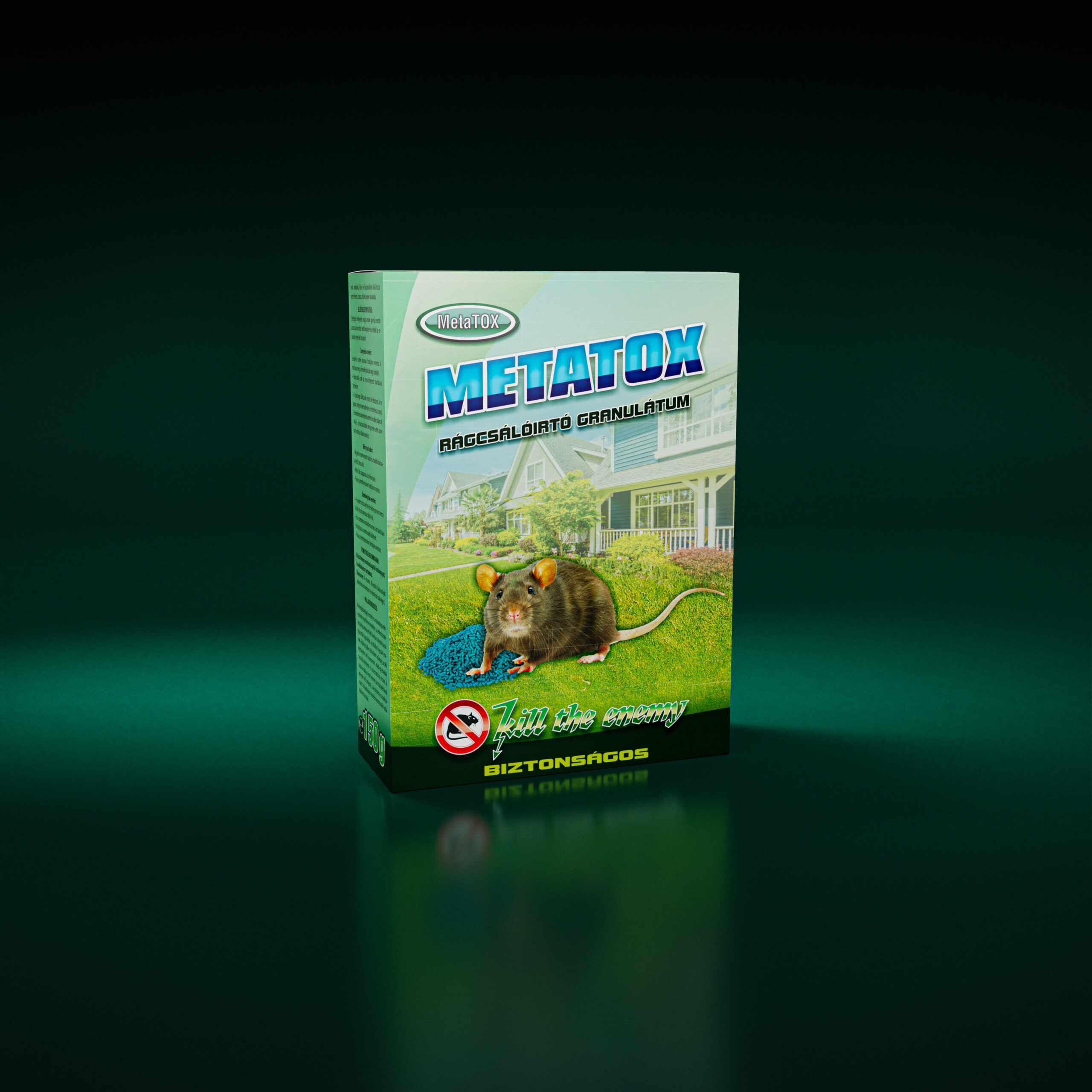 METATOX rágcsálóirtó granulátum, hatóanyaga: 0.0025% brodifacoum.”